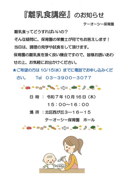 ☆2025年10月 離乳食講座の日程が決定しました☆